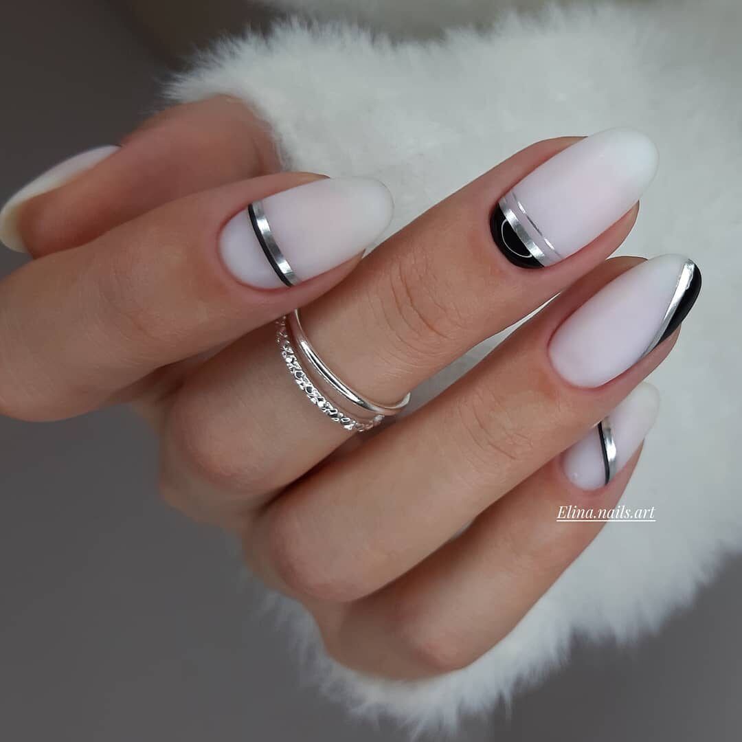 геометрический маникюр черно-белый