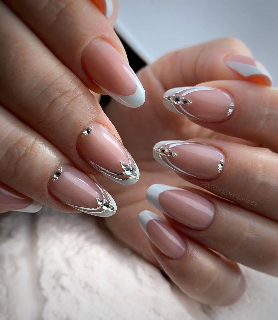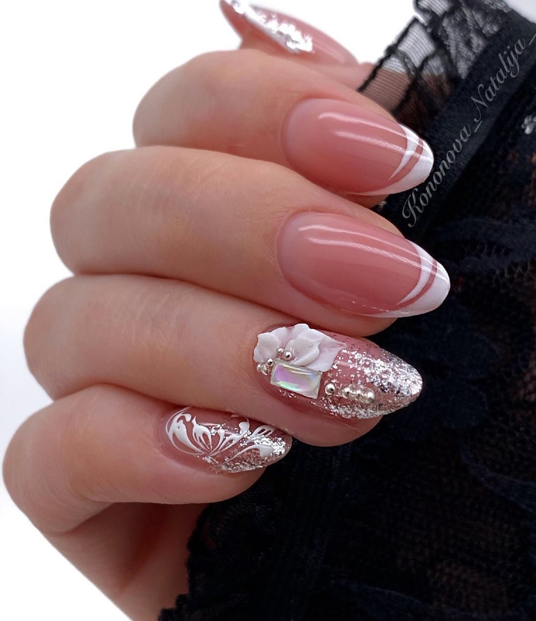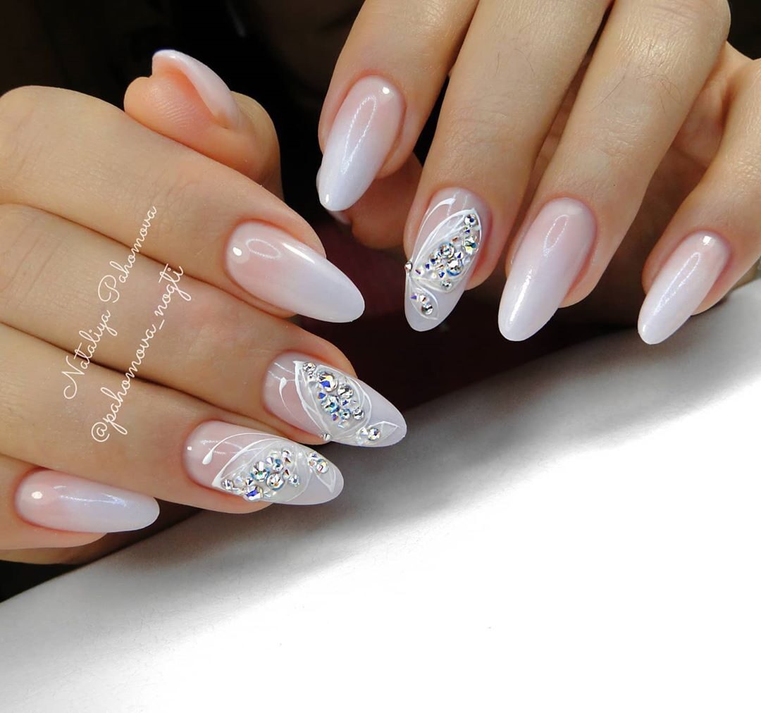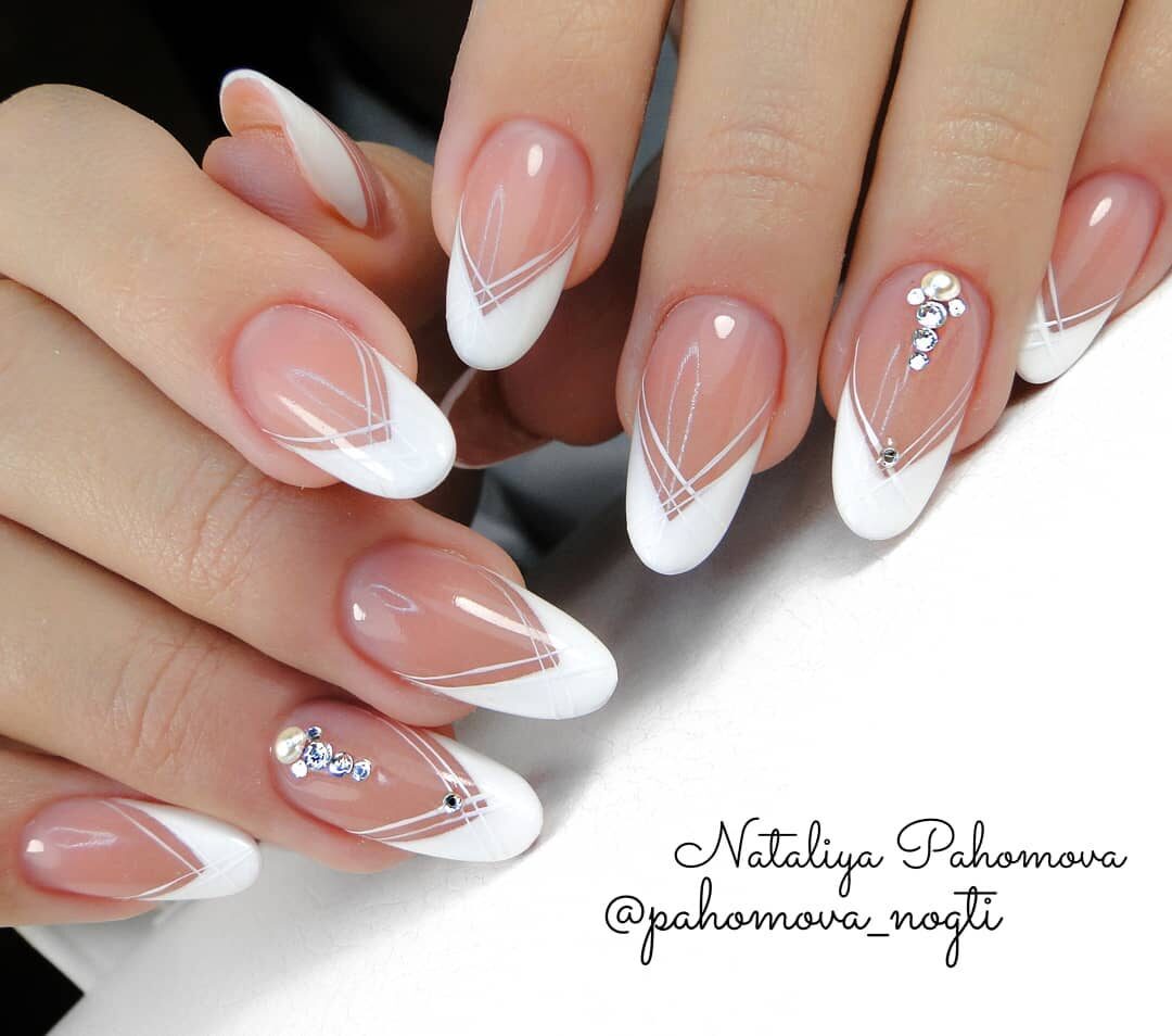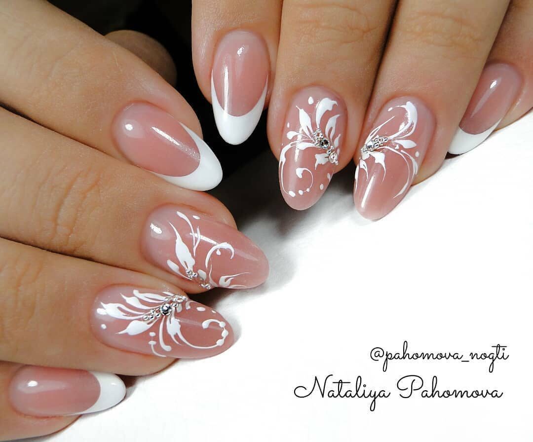 Есть мнение, что решение о таком дизайне ногтей было придумано невестой, желающей сделать не только свой образ сказочным, но и пальчика, на котором будет носить самое важное украшение. dizain-nogtey-foto-french-2017-51