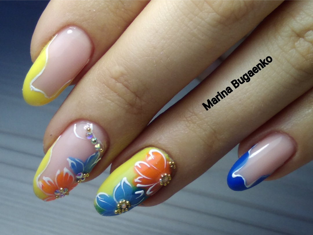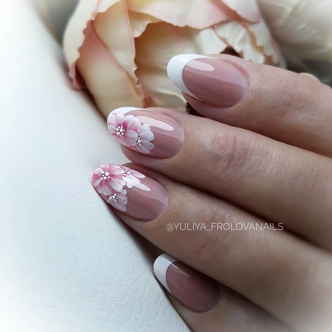 Френч с цветами – модный дизайн в маникюре