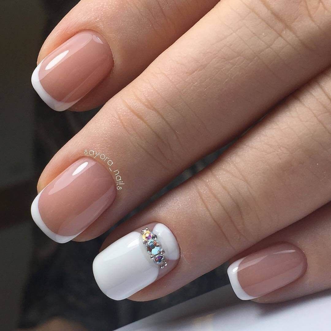 Модный белый френч, выполненный на коротких ногтях: идеи 2023-2024