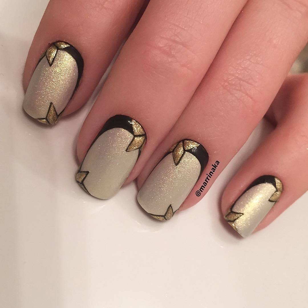 геометрический маникюр с золотом