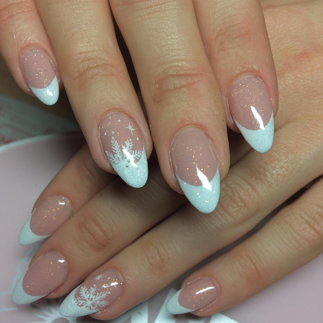 Что касается французского маникюра, то блестки в нем порой просто необходимы. Они освежают лаконичные однотонные нейл-арты, акцентируют прикорневую зону, помогают в создании дизайна омбре. В распоряжении девушек помимо простых сухих блесток еще множество другого декора, который по красоте не уступает стразам.