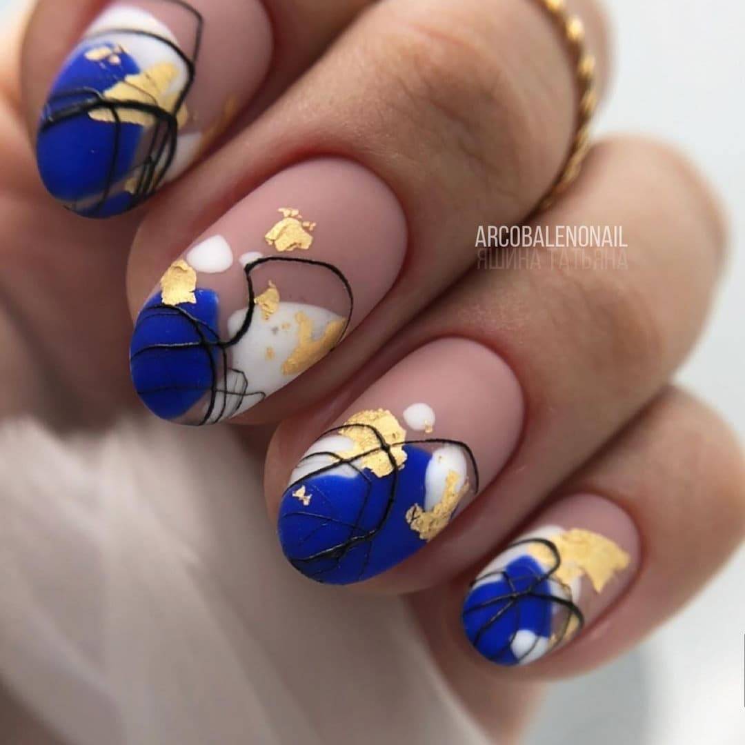 В качестве праздничного варианта отлично будет смотреться золотая фольга на части ногтя или на одном-двух в качестве контраста. Такая игра цвета и переливов подходит для торжественных случаев.