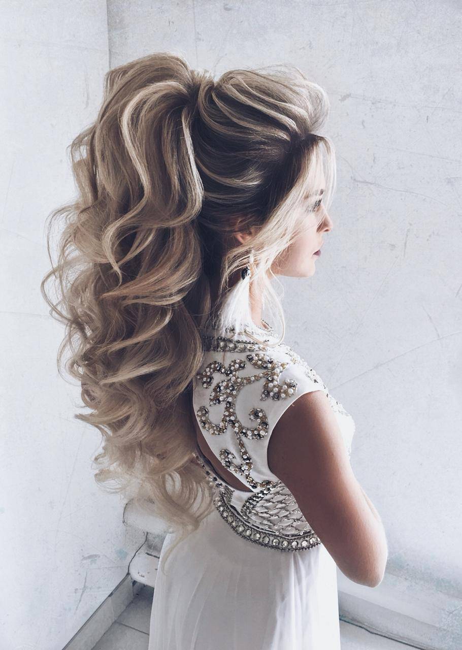 Выбор той или иной прически зависит от вечернего наряда. Под длинное платье в пол хорошо смотрятся ретро-укладки с волнами, прически с объемными пучками и выпадающими на лицо прядками. Под короткое коктейльное платье выбирайте укладку на бок, плетение с низким пучком, высоких хвост с начесом и т.д.