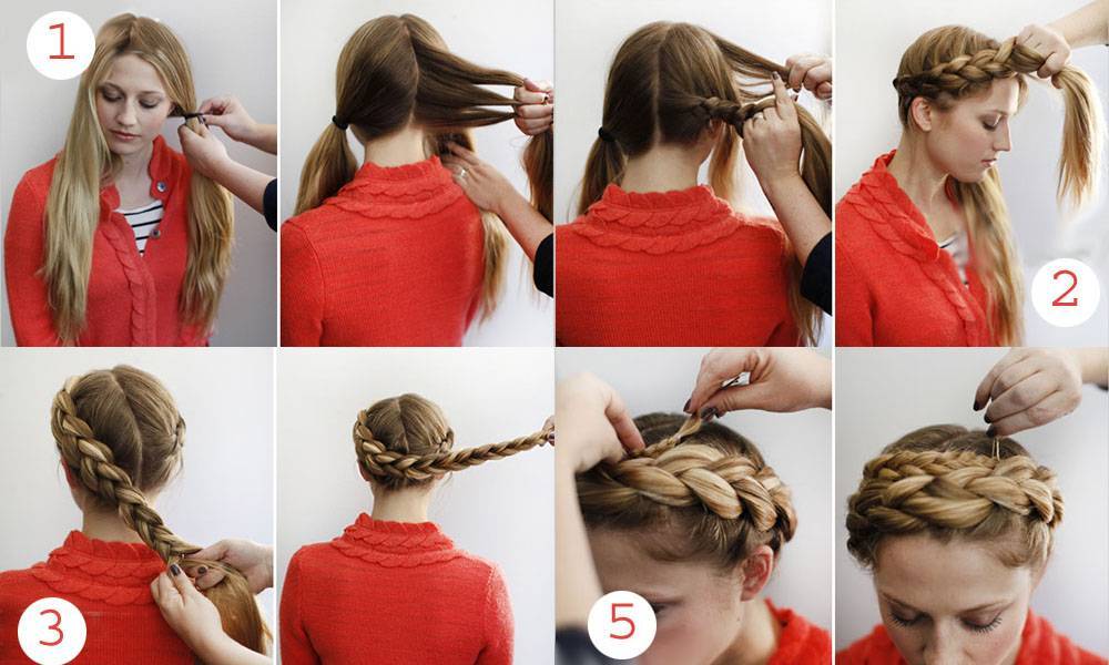 Пошаговое выполнение наглядно демонстрирует, что ничего сложного в прическе нет, если вы умеете плести обратные косы.