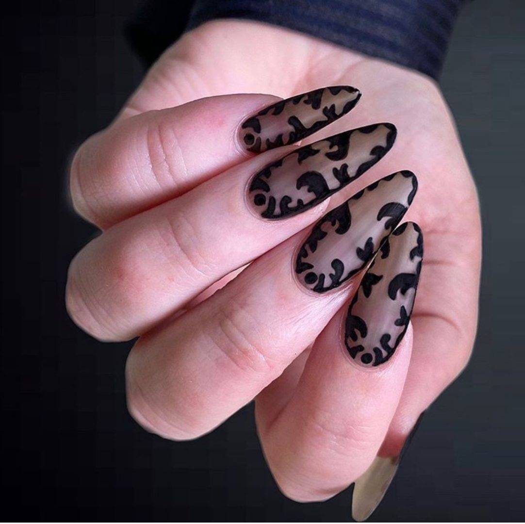 Ажурный и кружевной узор на длинных ногтях: новинки маникюра 2023-2024