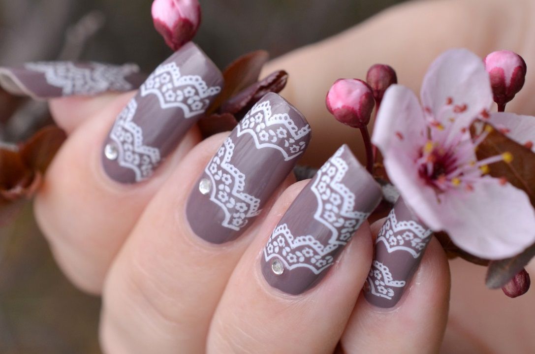 - пастель. Отличной основой под кружевной узор может стать не только классический белый и бежевый, но также пастельный тон. Но не следует выбирать глянцевое покрытие, остановитесь на матовом гель-лаке;