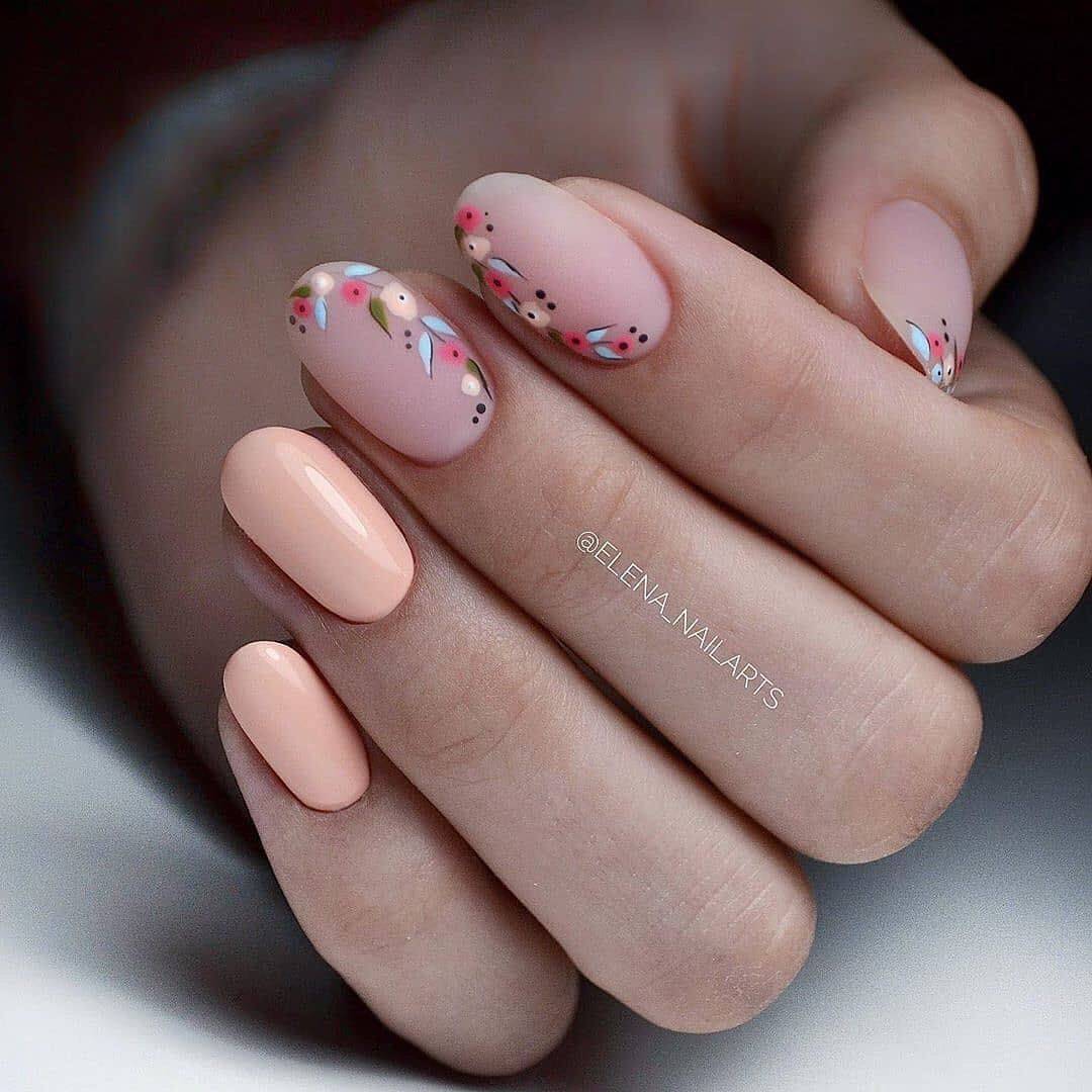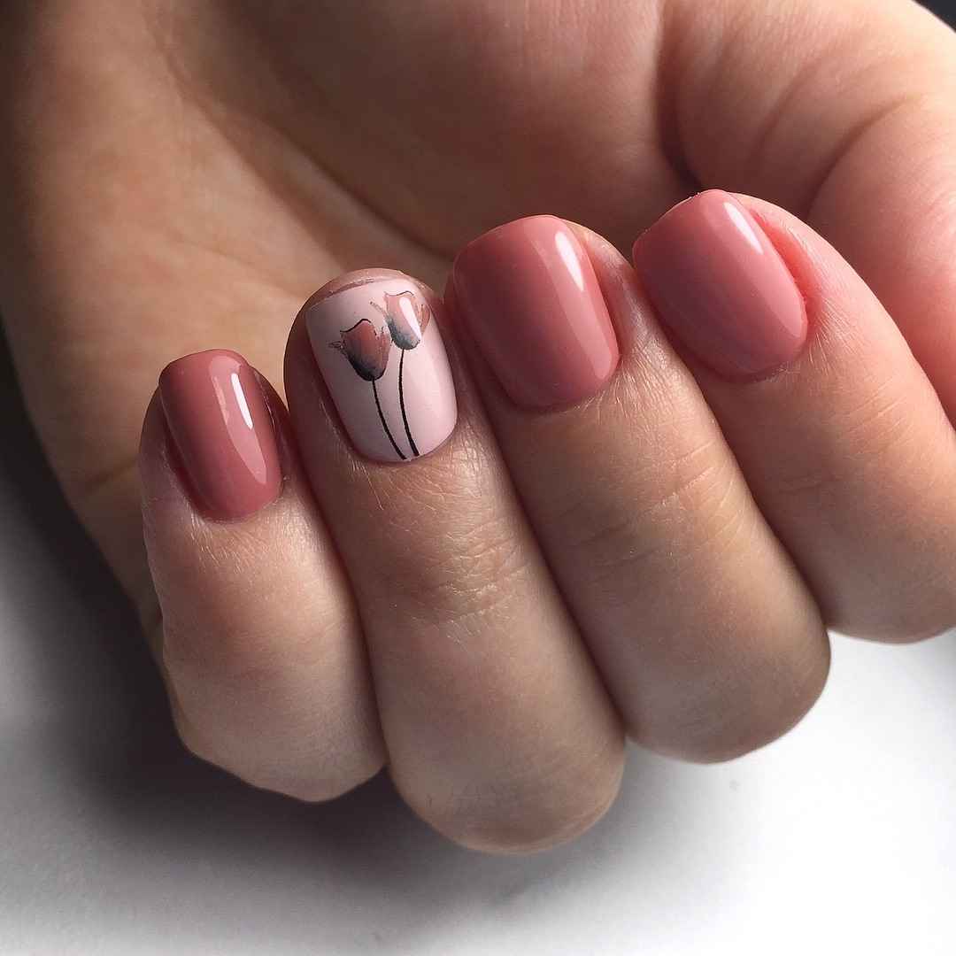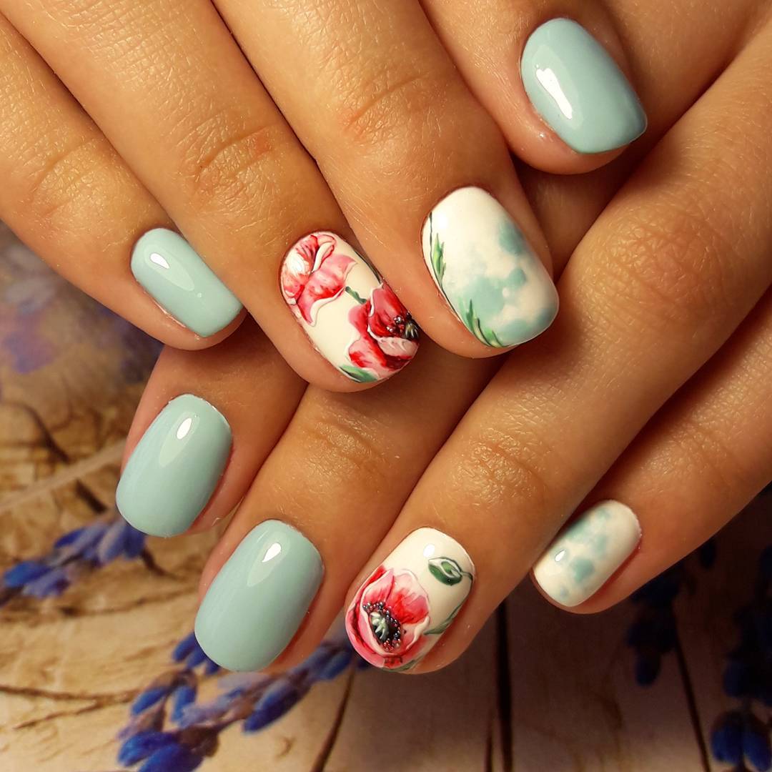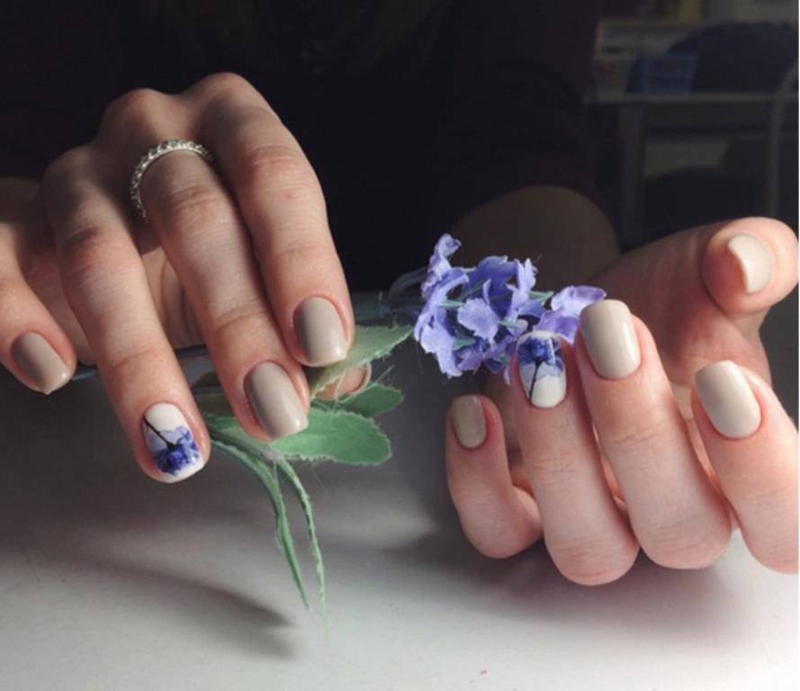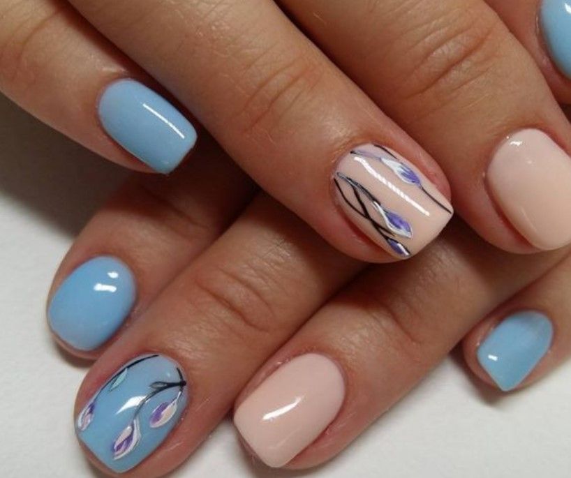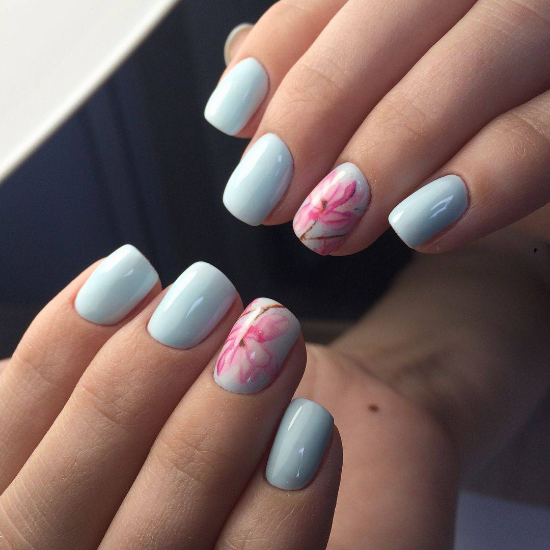 Модный маникюр на весну включает всевозможные весенние дизайны. Тематический маникюр весна 2021/2022 не обойдется без цветочков и другой флористики. Светлые тона гель-лака в розовом, голубом, лиловом, бежевом и белом цвете можно лаконично дополнить изумительными цветками и веточками.