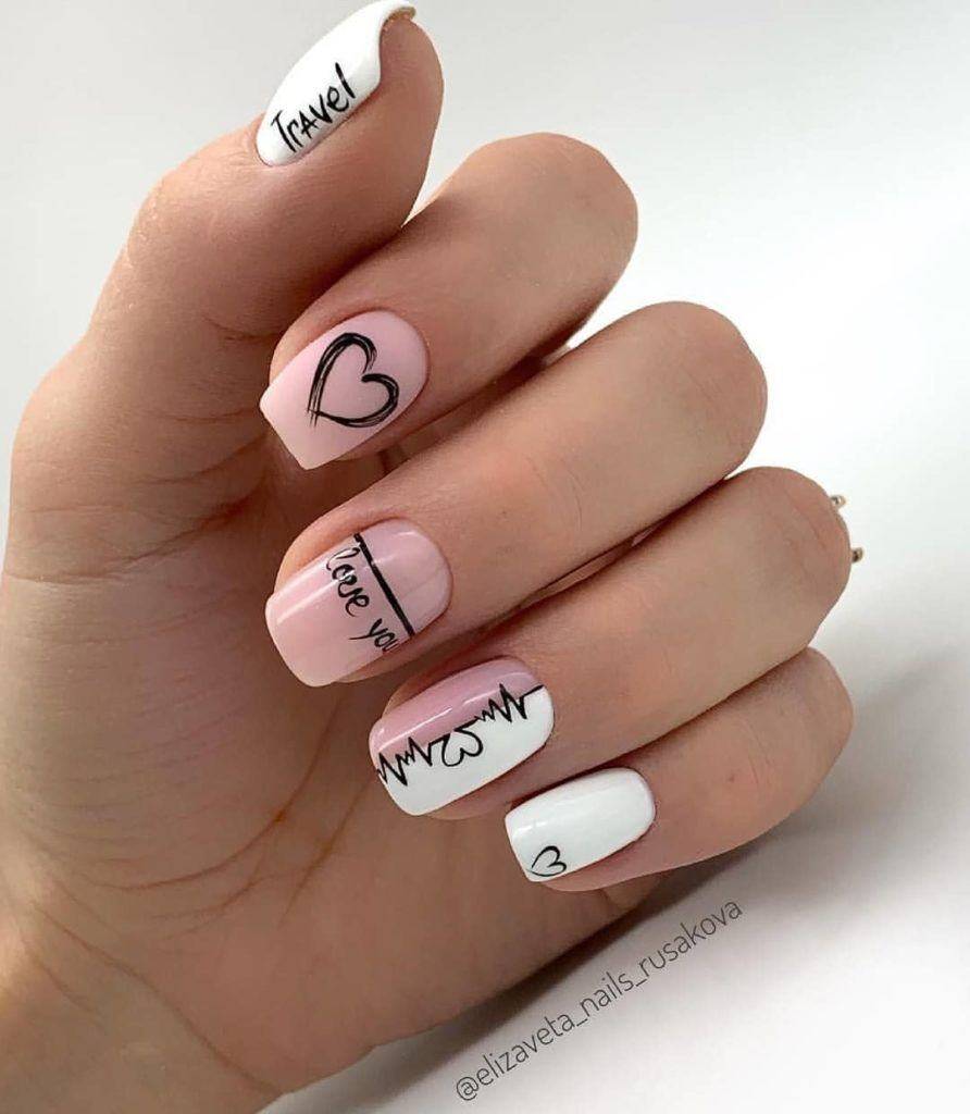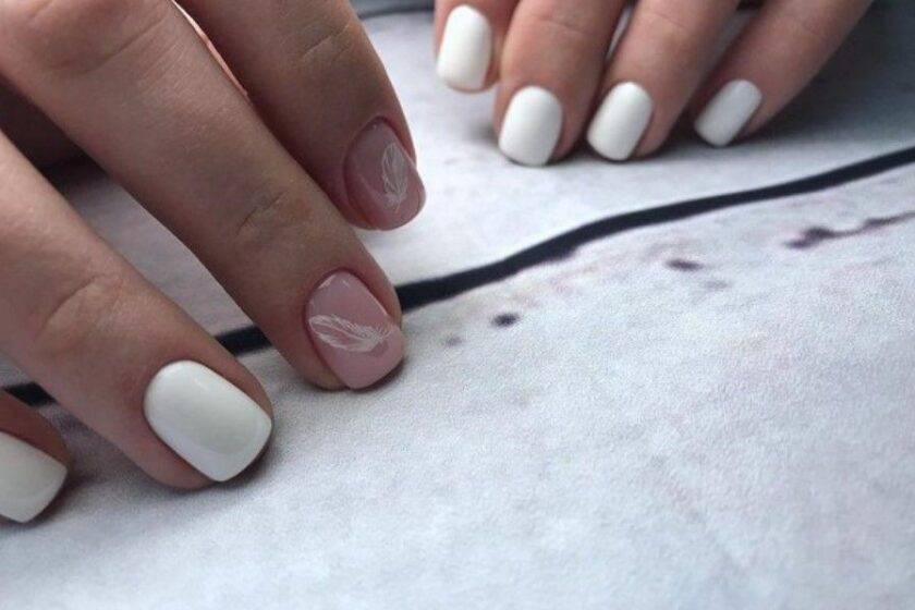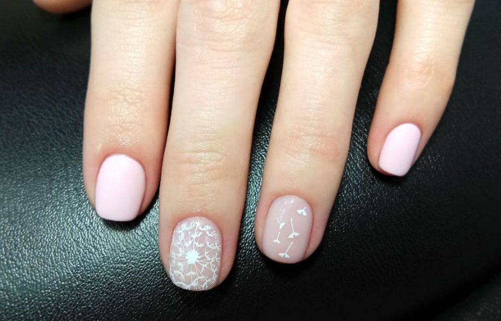 Весенняя мода — белый с розовым акцентом на среднем и указательном пальцах
