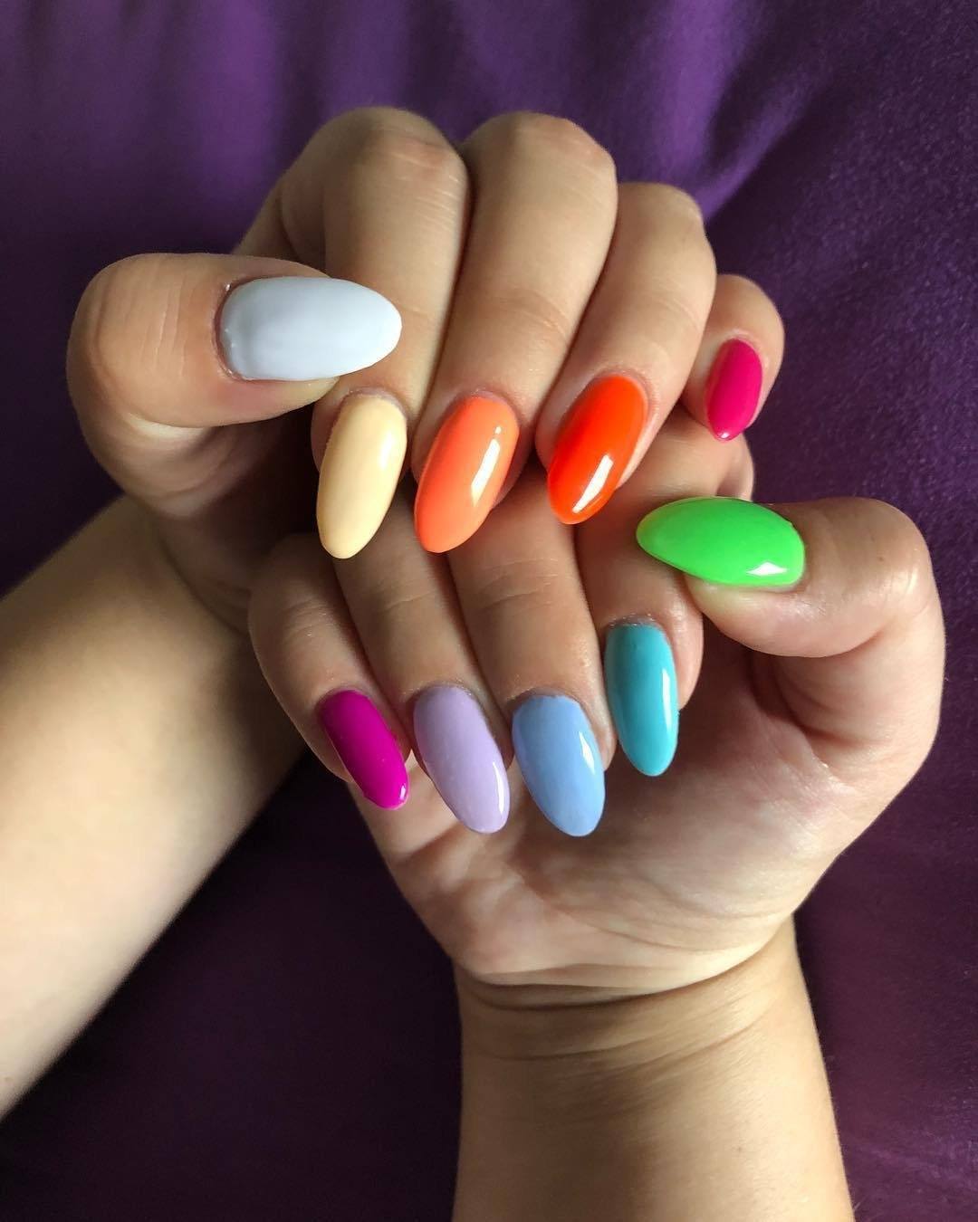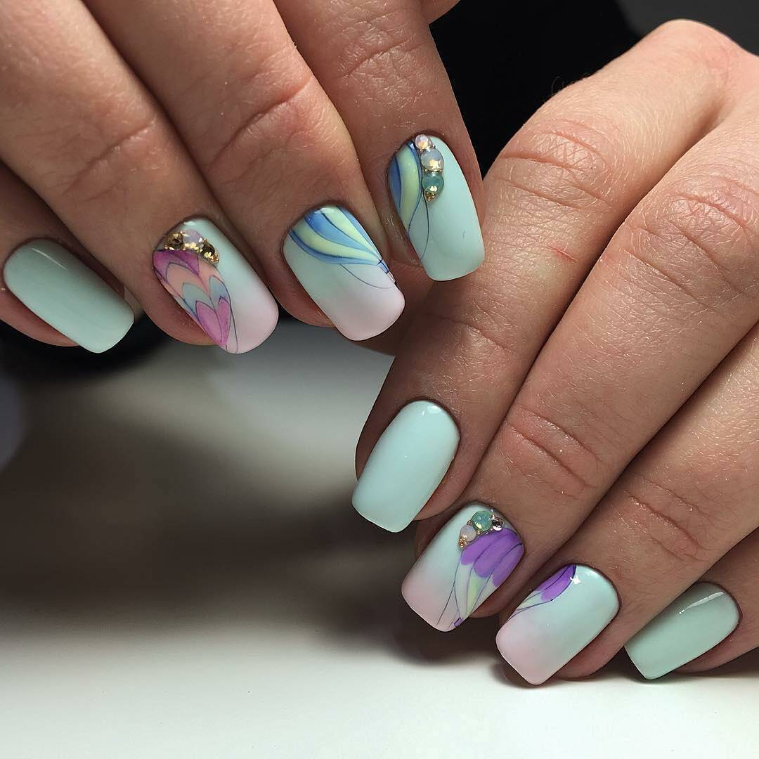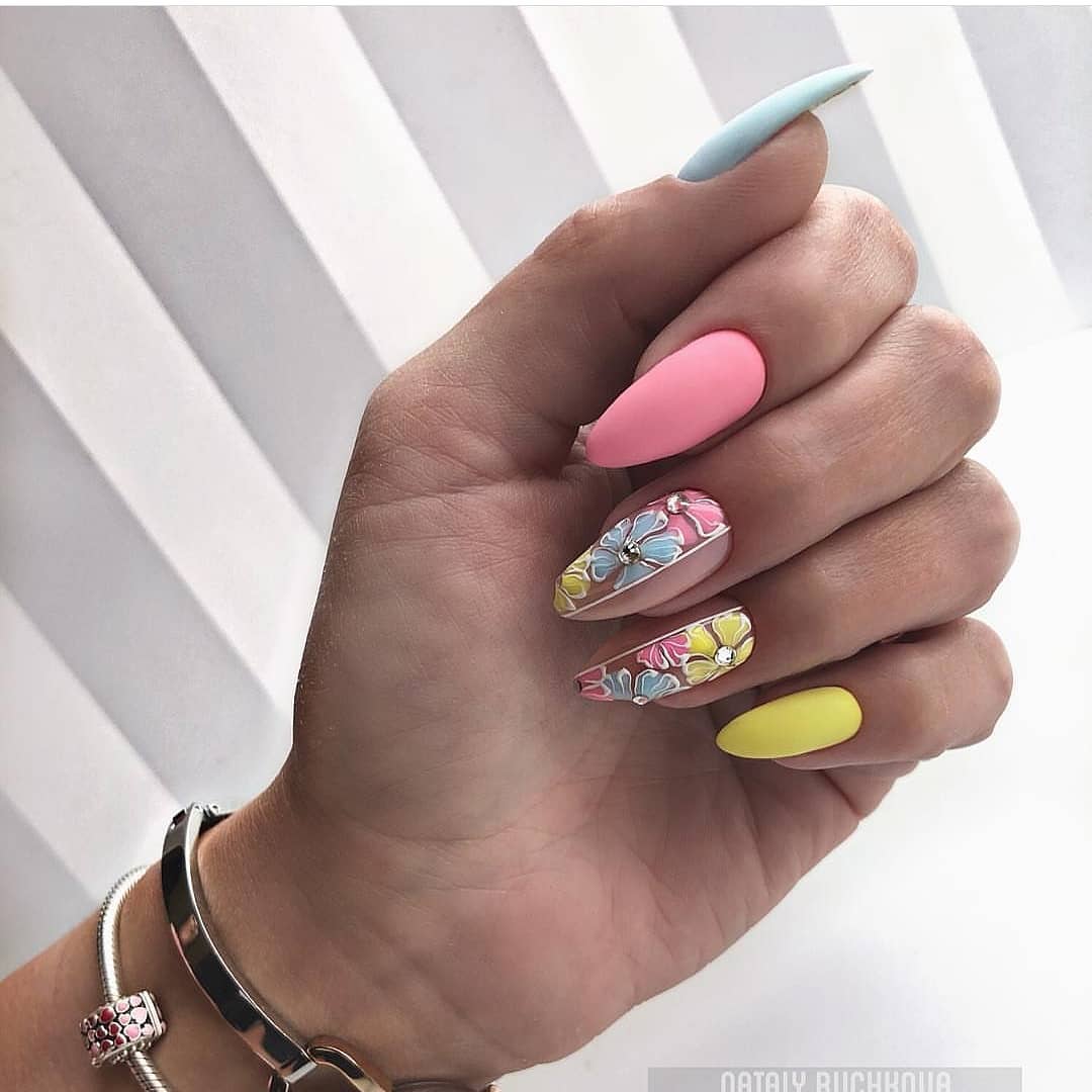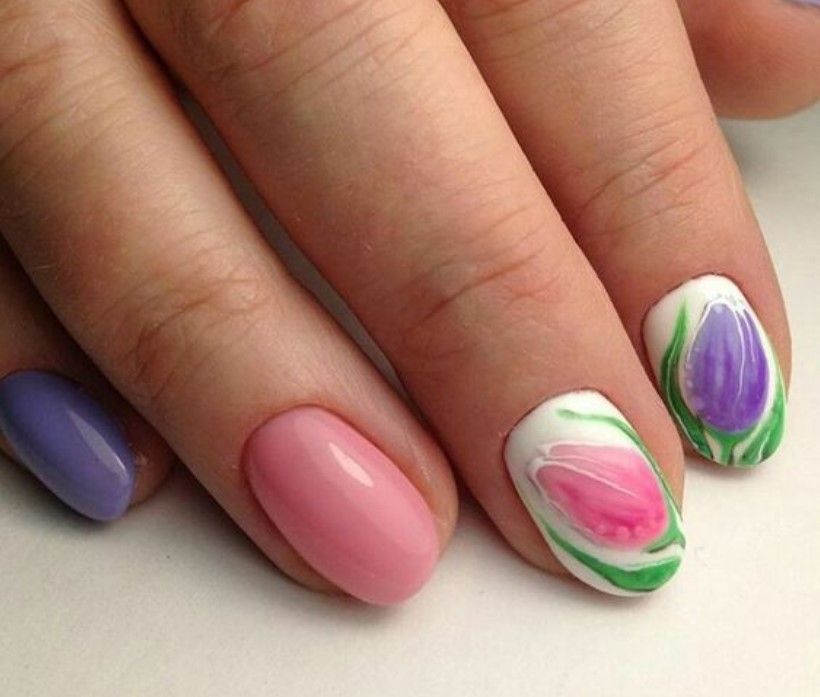 Этой весной, когда на выбор предлагается так много цветов, можно выразить себя с помощью разноцветного маникюра. Вы можете сочетать различные цвета в виде омбре, или просто покрасить ногти в несколько разных весенних оттенков.