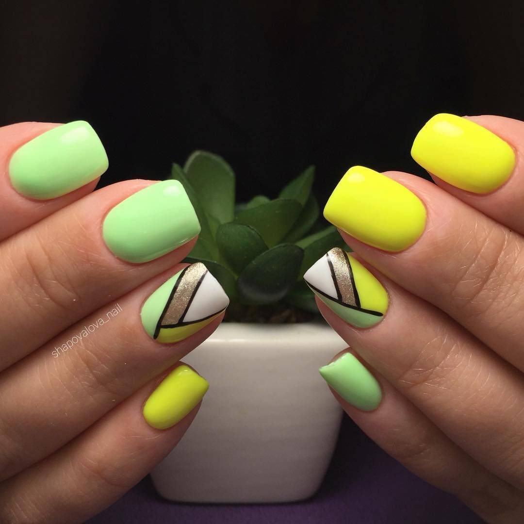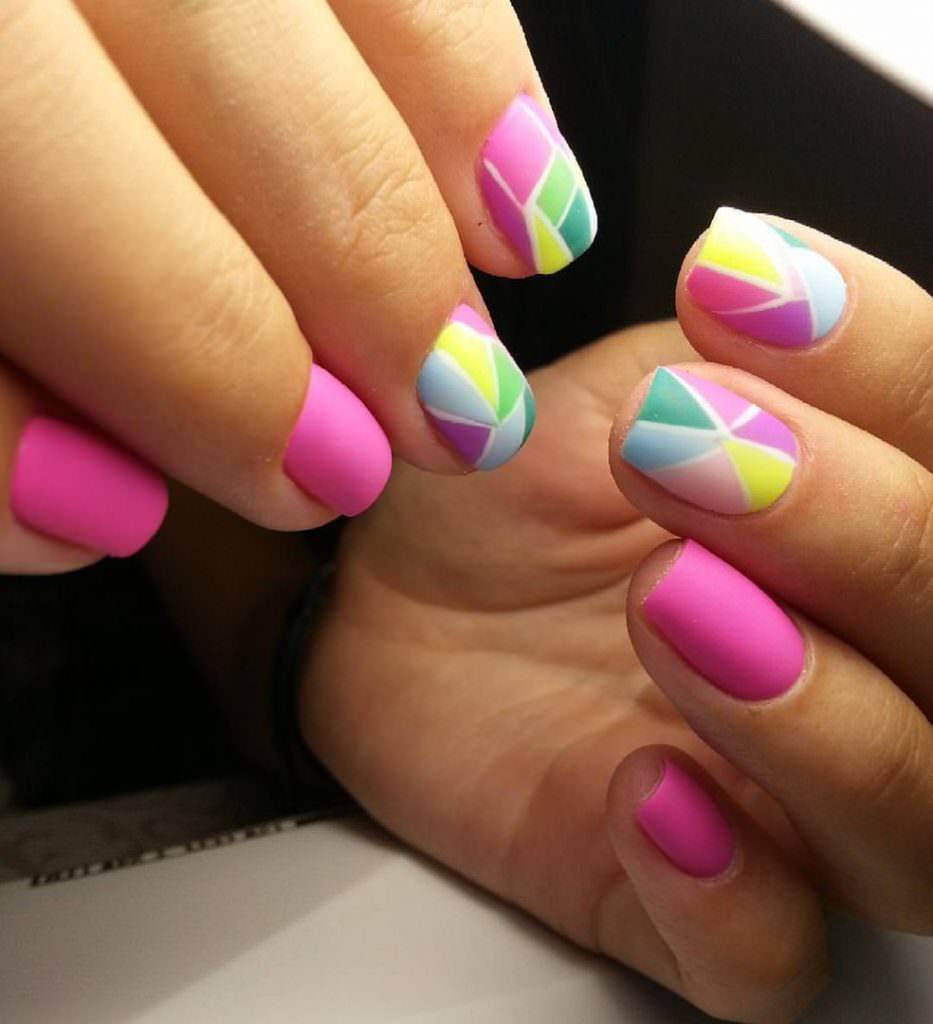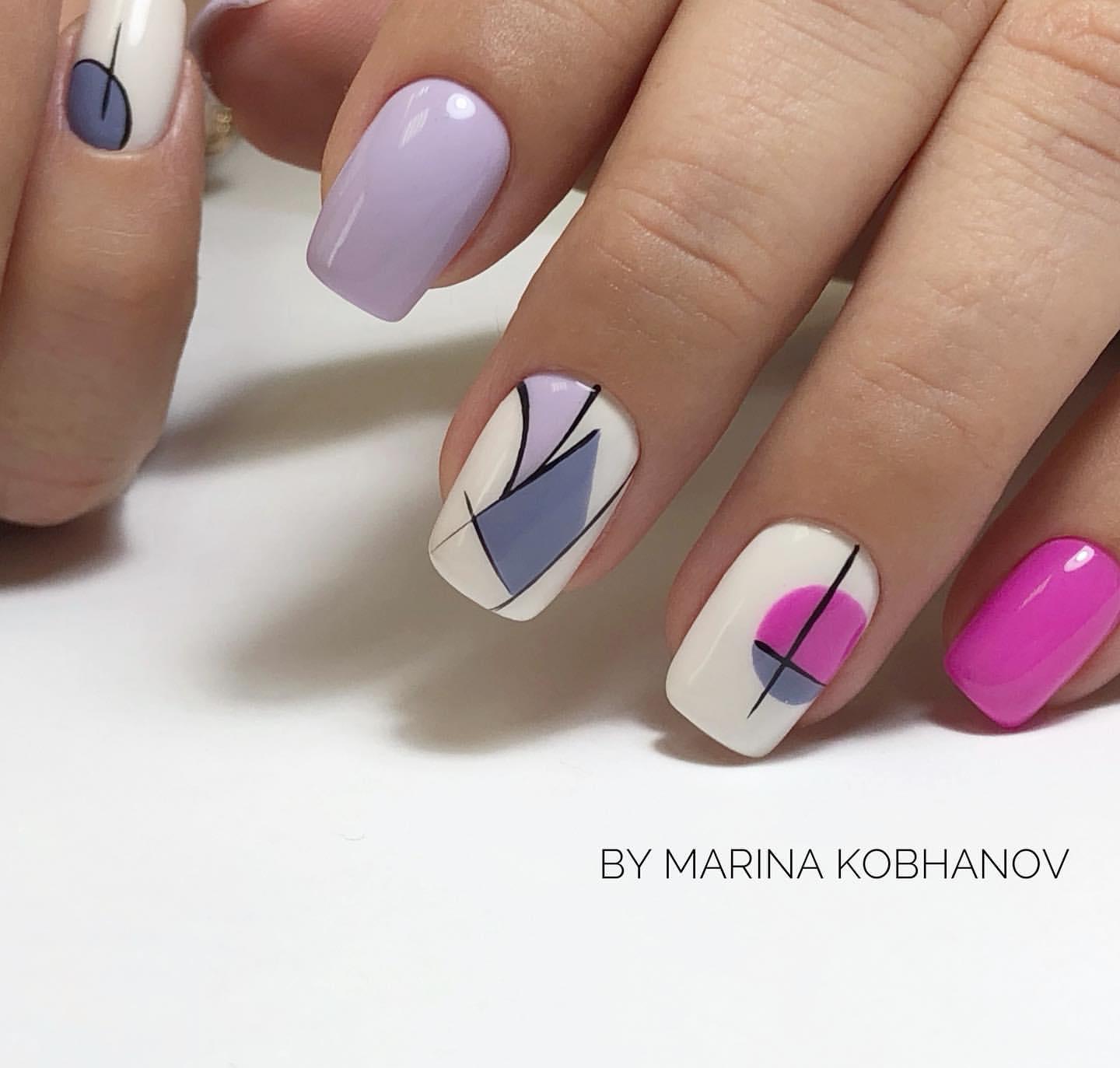 В частности, это персиковые, бежевые, голубые и другие более яркие и сочные оттенки. В маникюре геометрия стоит попробовать использовать разные подходы к нанесению рисунка. Вы можете сделать более классический вариант, а можно наоборот что-то яркое и броское.