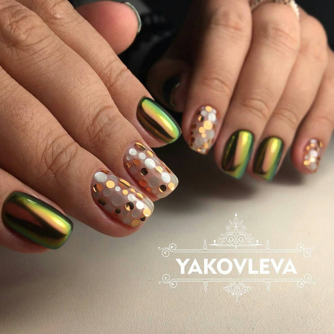 - ногти можно смело украшать глиттером, металлической втиркой, стилем камифубуки;
