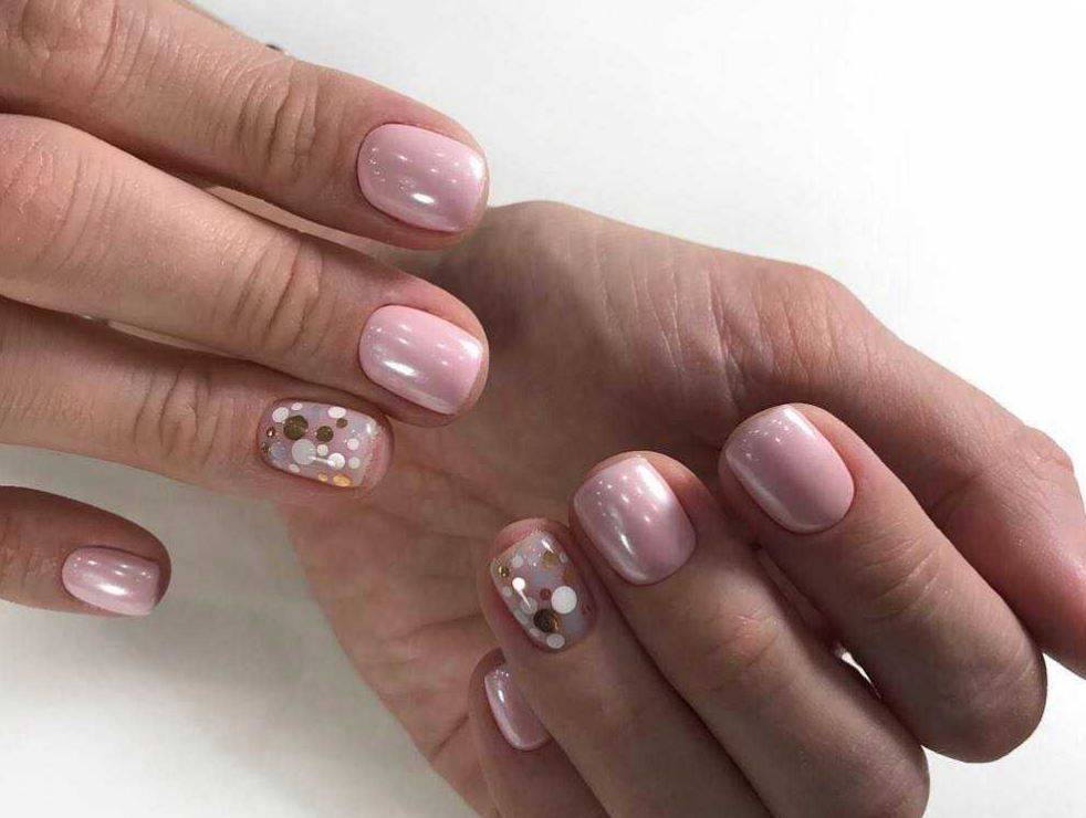 Нежно-розовый маникюр с пенным на безыияннм пальце