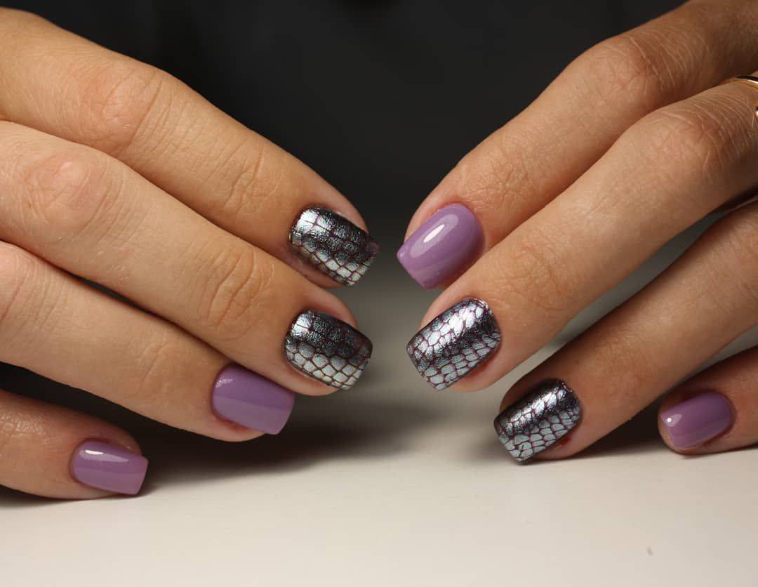 Первое, с чем ассоциируется серый, — это скука. Но маникюр в таком цвете может быть действительно элегантным и шикарным, не выглядя при этом однообразным. В 2023 году серый лак будет отлично сочетаться с нежным лавандовым оттенком. Такой маникюр выглядит женственно и нежно, что делает его идеальным вариантом для весеннего нейл-арта.