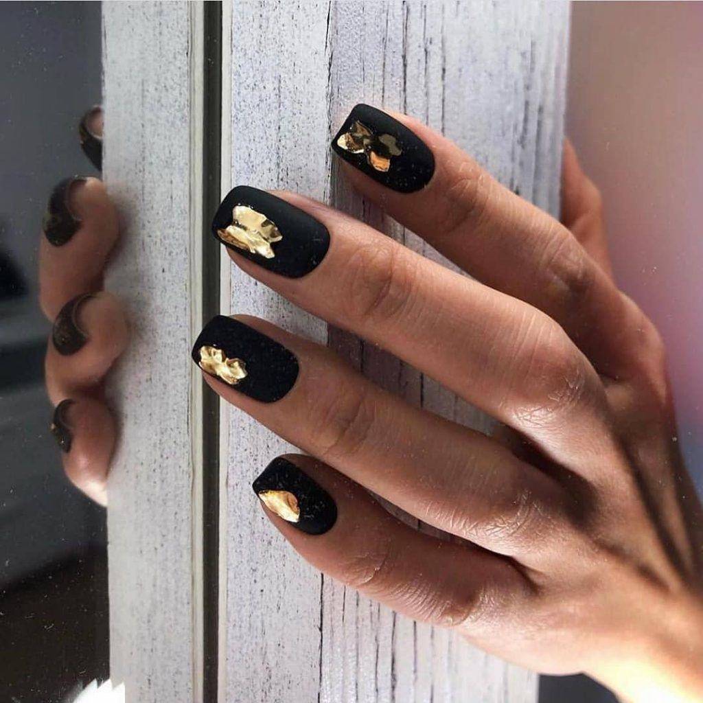 Для создания драматичного и остроумного образа выбирайте черные ногти. Сделайте глянцевое покрытие или добавьте немного блеска с помощью блесток.