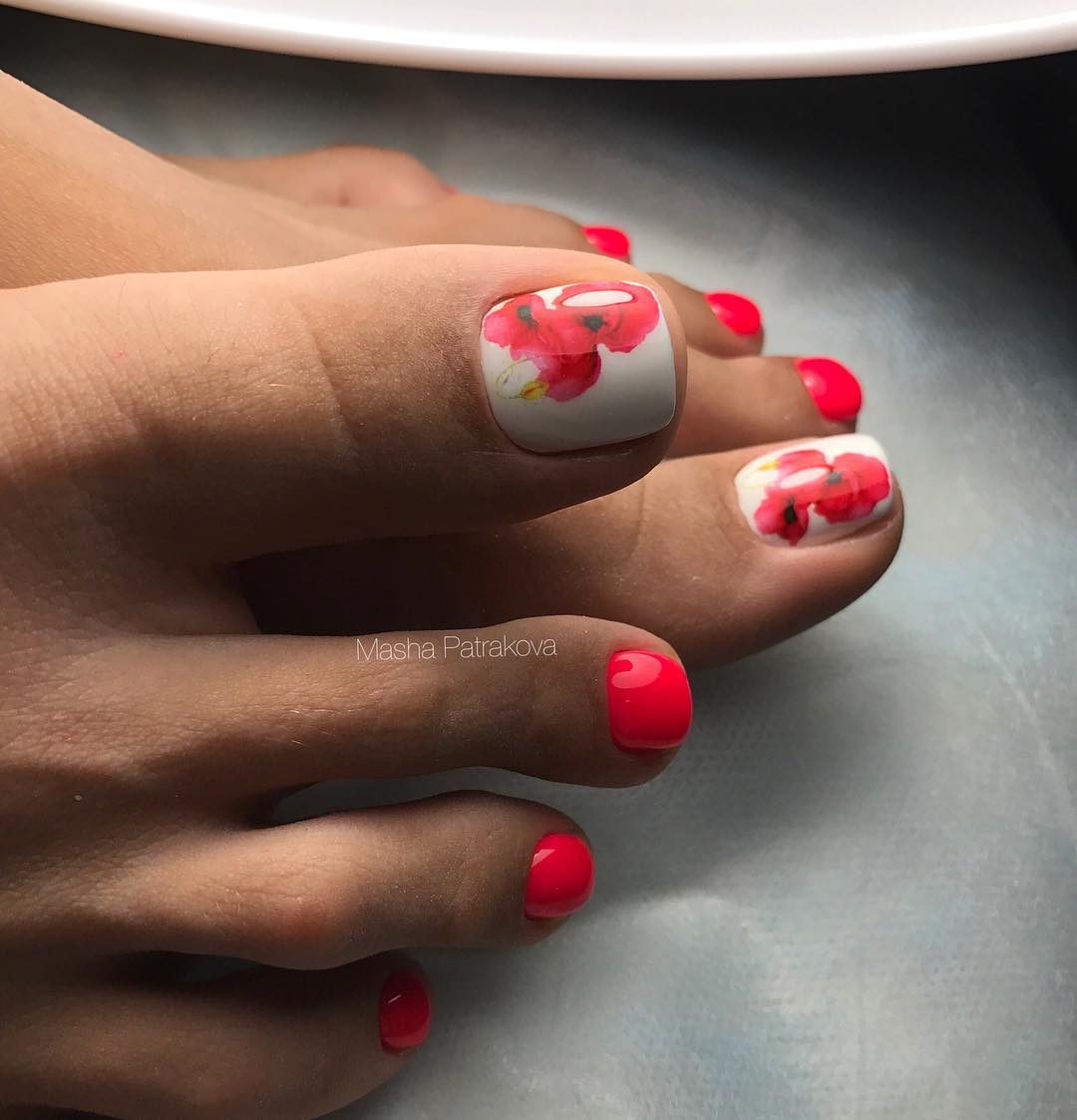 Обратите внимание на сочетание красного и белого цветов. На ногах, также, как и на руках, оно смотрится очень нежно и красиво