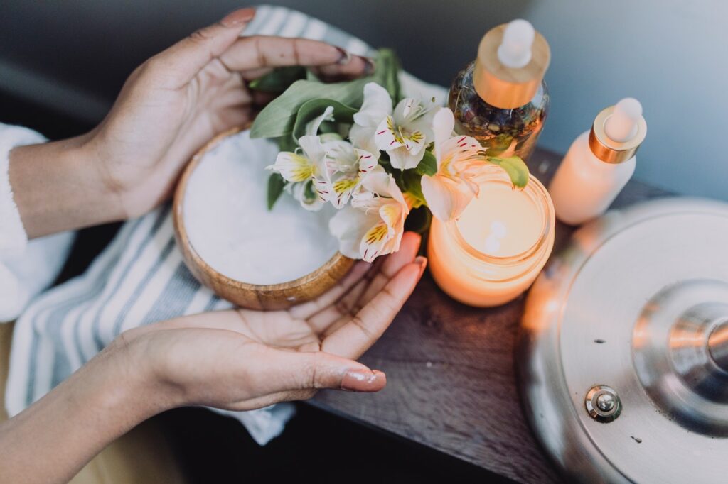 Следующий этап – это успокаивающая ванна для ног. Для этого ты можешь добавить в теплую воду немного жидкого мыла и несколько капель любимого эфирного масла для расслабления.