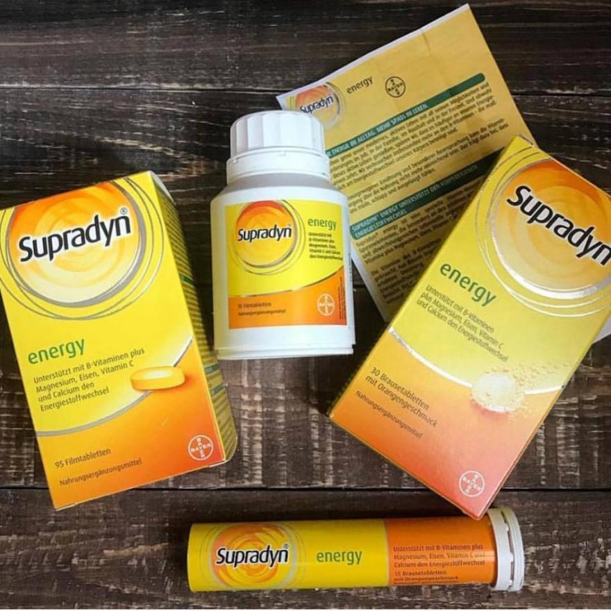 - «Супрадин Чистая Энергия». Составляющие компоненты: витамины A, B1, B2, B3, B6, B9, B12, C, D3, E, H, фосфор, марганец, медь, кальций, магний, железо, молибден, цинк. Препарат предназначен для поддержания тонуса организма, восполняет запасы нутриентов, помогает преодолеть вялость, сонливость, упадок сил, улучшает всасывание активных веществ из пищи, ускоряет биохимические реакции, обмен веществ.