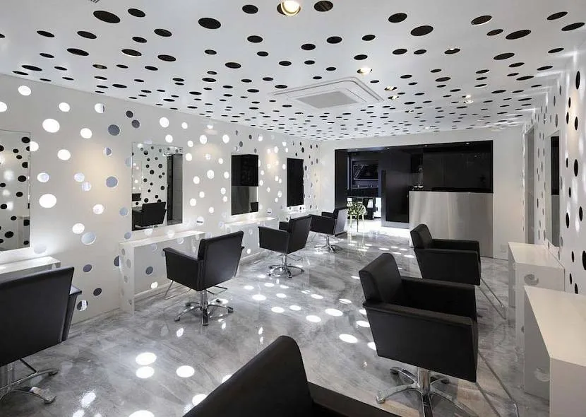 Освещение – это важный аспект, который непосредственно влияет и на рабочие процессы, и на зонирование, и на зрительное восприятие пространства. Относительно светового оформления салонов красоты, здесь светильники делятся на группы: точечные – на рабочих местах мастеров и верхние – для приемной и зала.