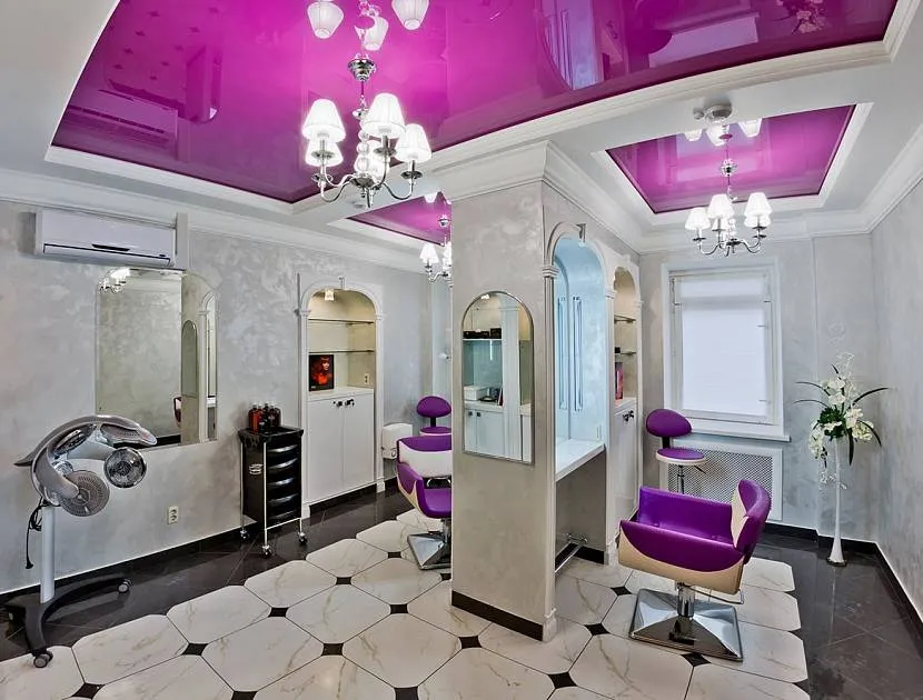 Глянцевый потолок в салоне красотыИсточник potolki-domoi.ru