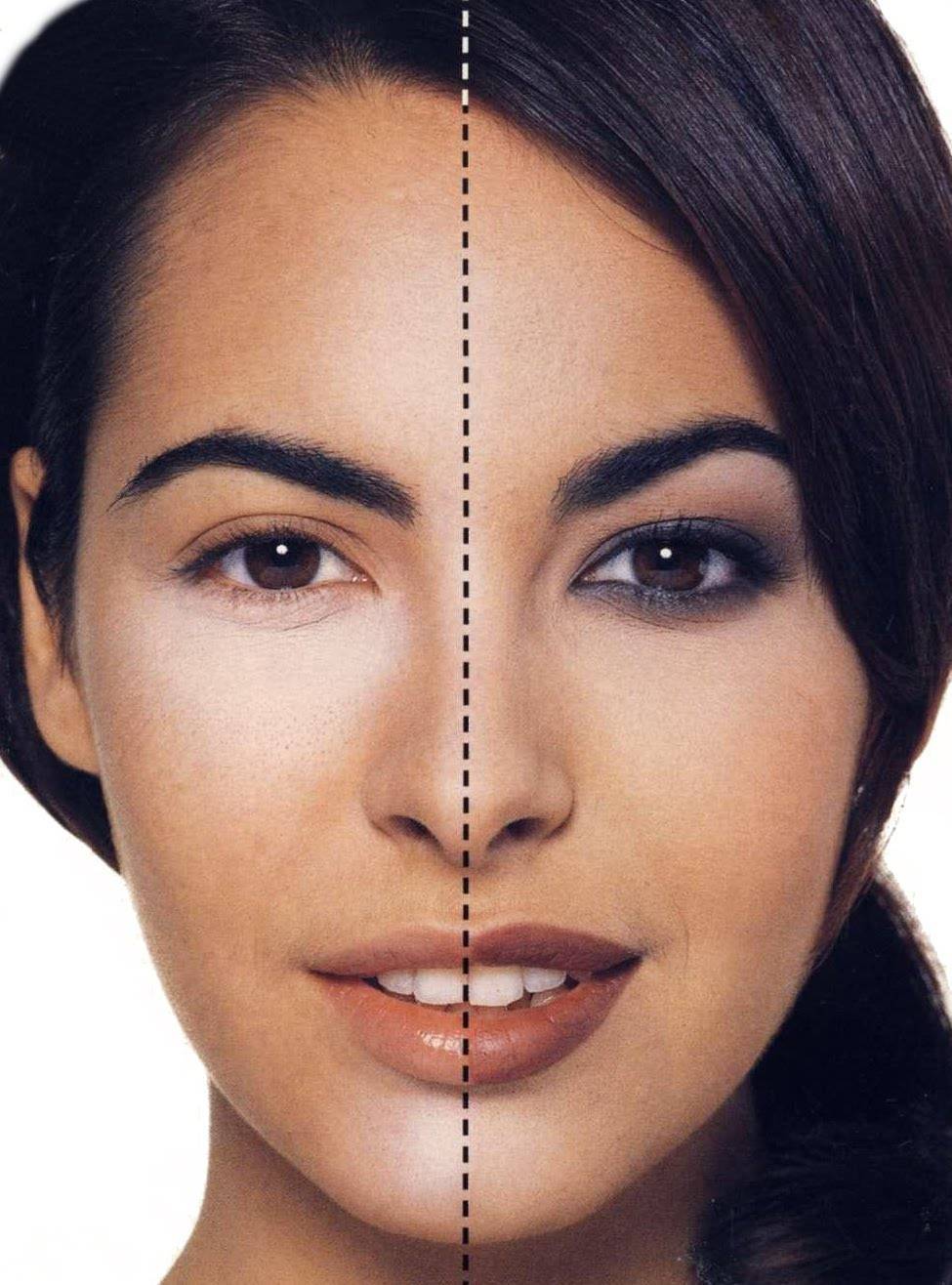 для начала нужно обеспечить коже лица идеальную гладкость и ровность тона при помощи тонального крема, корректора, консилера;