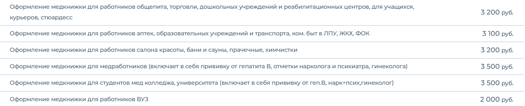 Сотрудники системы здравоохранения и пищевой промышленности проходят обширное обследование. Стоимость его выше, чем для иных специалистов.