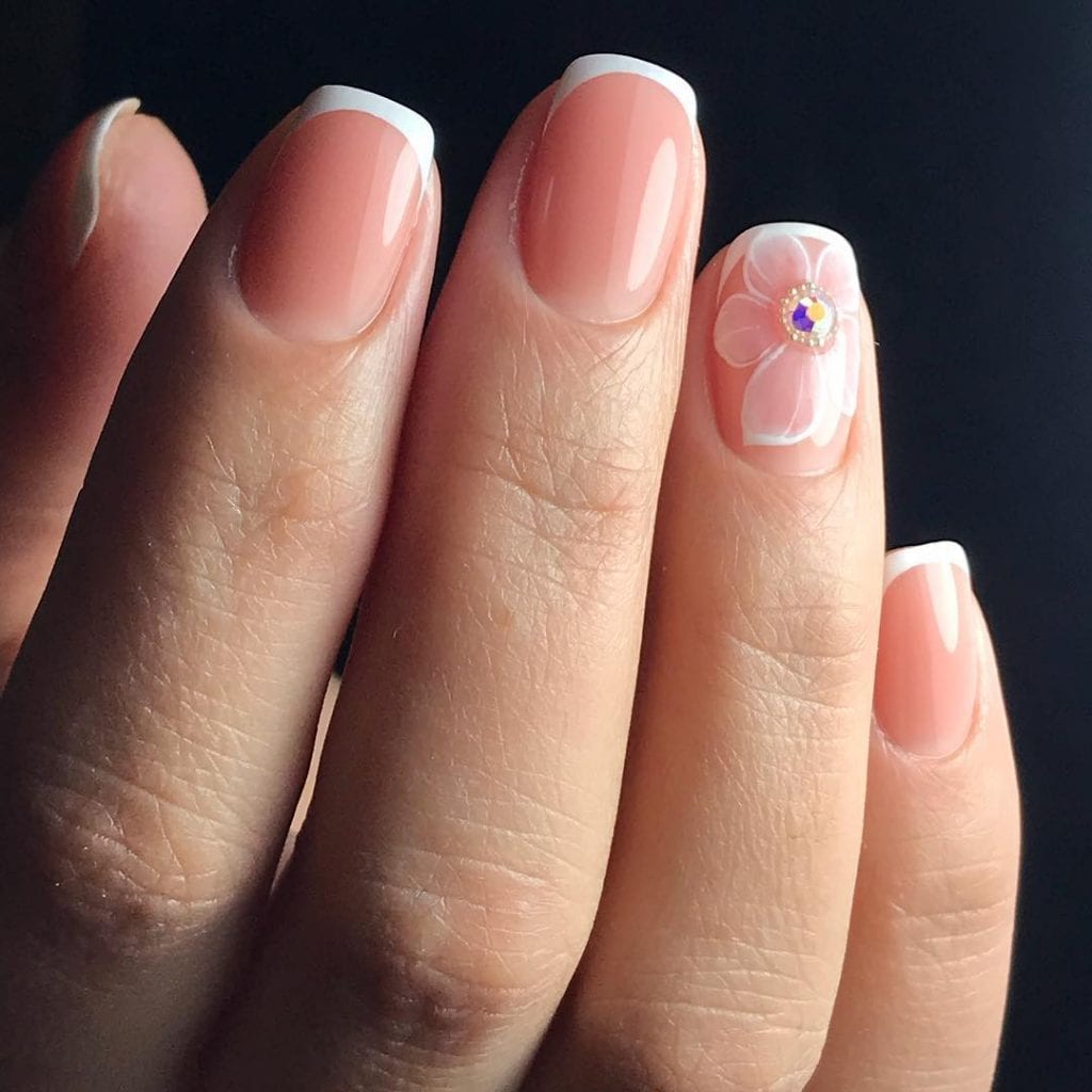 Это нежный дизайн, который способен создать вокруг себя легкую ауру. Он смотрится бесподобно в сочетании с любой одеждой и обувью. С таким маникюром вы можете посещать серьезные мероприятия, деловые встречи, идти на свидание или даже в спортзал — и точно всегда будете на высоте.