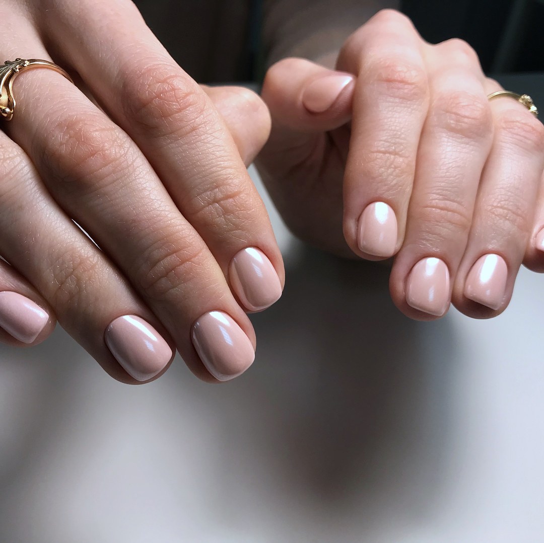 Нежным девушкам больше подойдет маникюр с жемчужной втиркой в нюдовых тонах (бежевый, молочный, розовый, нежно-лавандовый, светло-серый, светло-голубой). Ее наносят на все пальцы или на несколько. Этот вариант подходит для ногтей любой длины и формы. Такой маникюр выглядит лаконично и роскошно.