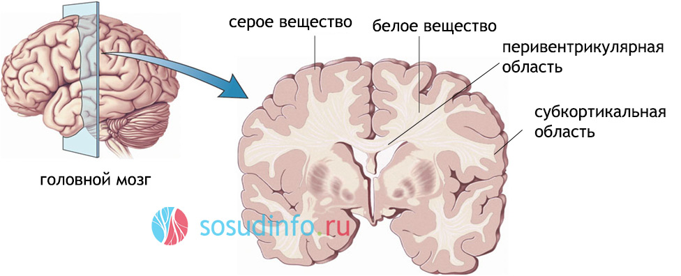 Диффузный субкортикальный лейкоареоз обусловлен недостатком кровообращения в микроциркуляторном русле и конечных артериолах, не имеющих коллатералей. Во время сна, эпизодов повышения или понижения артериального давления сосуды не успевают компенсировать недостаток поступающей крови, мозговая ткань испытывает гипоксию, нейроны гибнут, отростки их распадаются. Характерным считается двусторонний характер поражения с началом патологических изменений перивентрикулярно и распространением их по обоим полушариям.