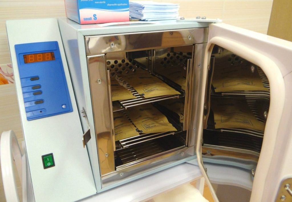 Наиболее доступным способом является использование сухожарового шкафа. Единственный нюанс: корундовые фрезы вследствие своей пористости не могут быть эффективно простерилизованы в сухожаре. Естественно, что стерилизации при 180° не подвергается пластик и дерево — то есть обычные многоразовые пилки, щеточки и кисточки. Поэтому их рекомендуется выбирать одноразового использования или выбирать для них химическую стерилизацию.
