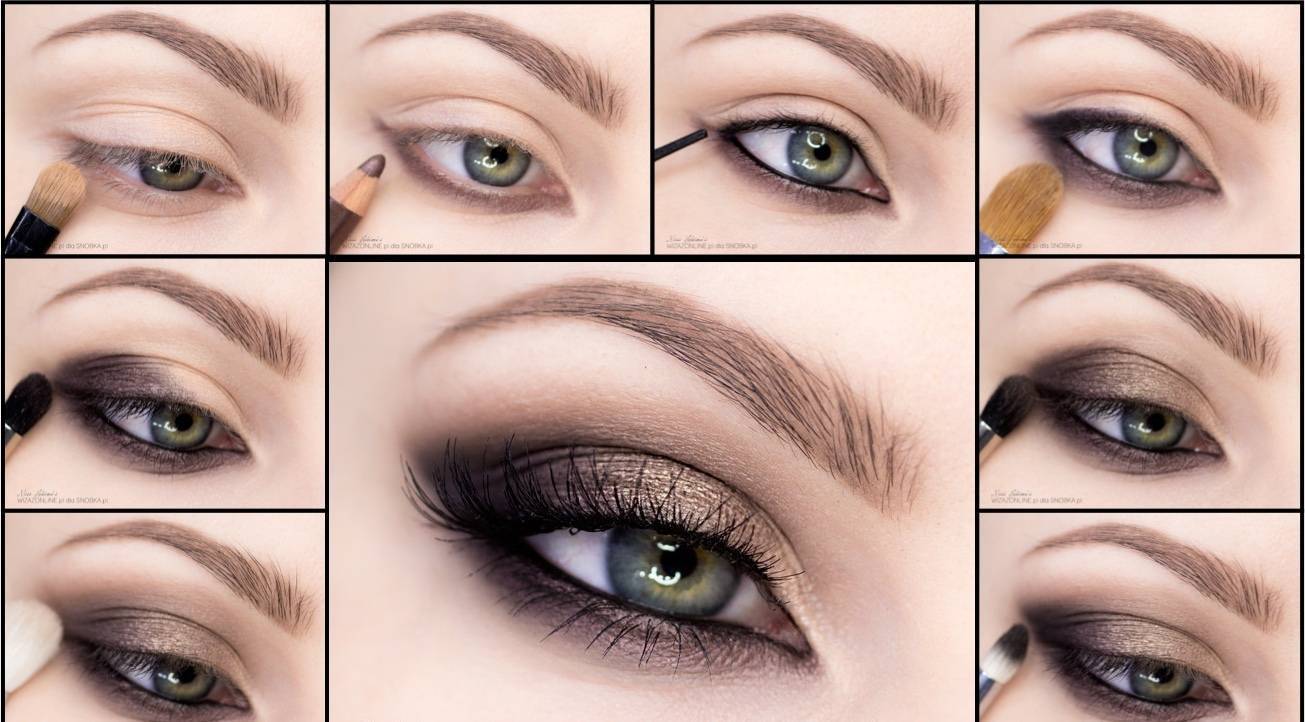 Пошагово мейк-ап для зеленых глаз смоки айс выполняется так: