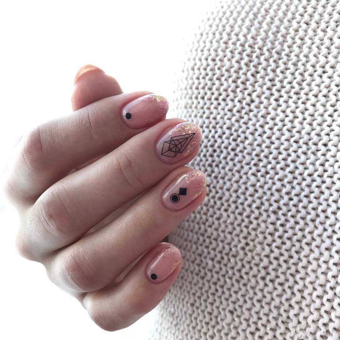 Подойдут любые тона или рисунки. Здесь используется как вечерний чёрный цвет со стразами, так и нежный розовый или молочный для будней. Это универсальная форма ногтя, которая позволяет использовать более спокойные пастельные оттенки. Даже простой однотонный дизайн не смотрится скучно, как например та же палитра на квадратных коротких ногтях.