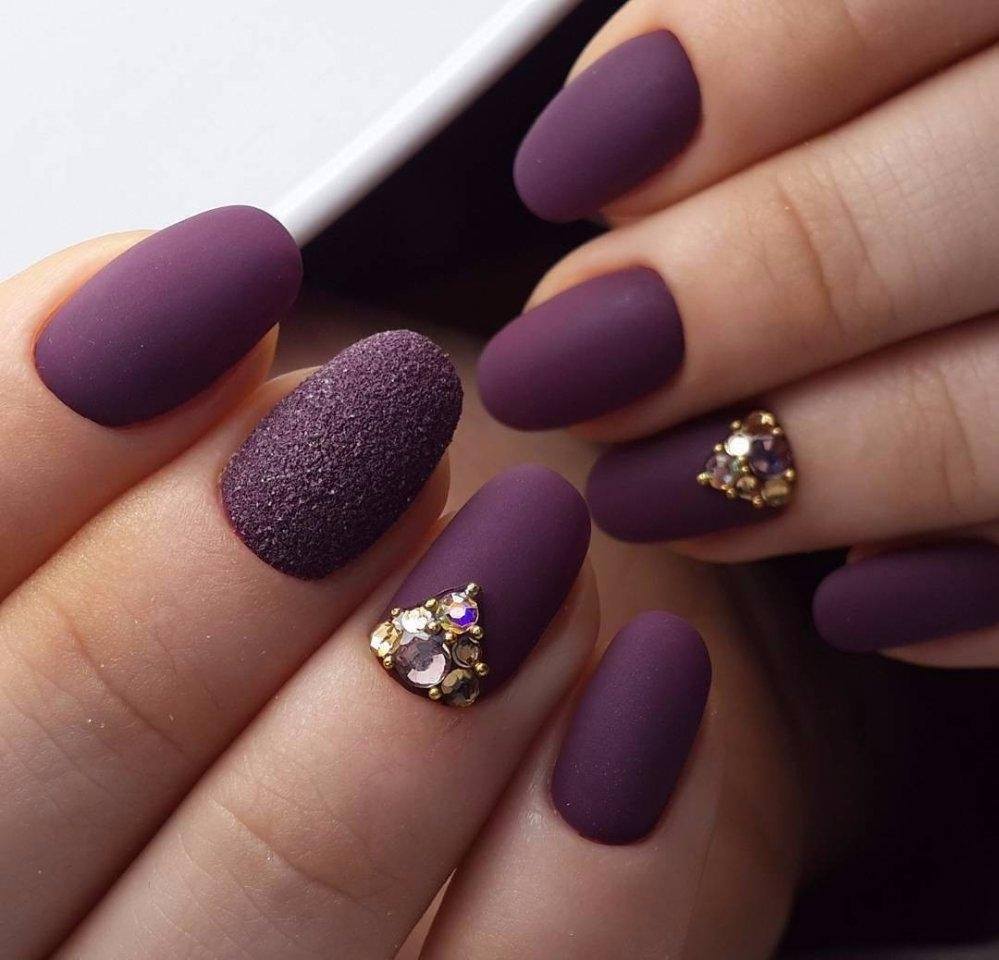 - Фиолетовый — красивый насыщенный оттенок для стильного зимнего маникюра.
