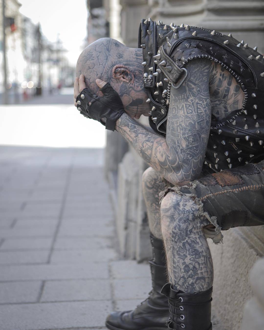 Спустя время тело парня заполнилось татуировками, после того, как он выложить в социальные сети свои необычные фотографии, то они сразу заинтересовали множество людей. В одном из интервью, Зомби бой признался, что на улице он фотографировался с людьми за деньги и таким образом зарабатывал себе на жизнь. Многие прохожие просили сделать фото на память, так как их очень привлекало необычное тело полностью покрытое татуировками. Вскоре ним заинтересовался известный дизайнер и предложил стать моделью для его коллекции. С этого и начался творческий путь парня, известного под псевдонимом Зомби бой.