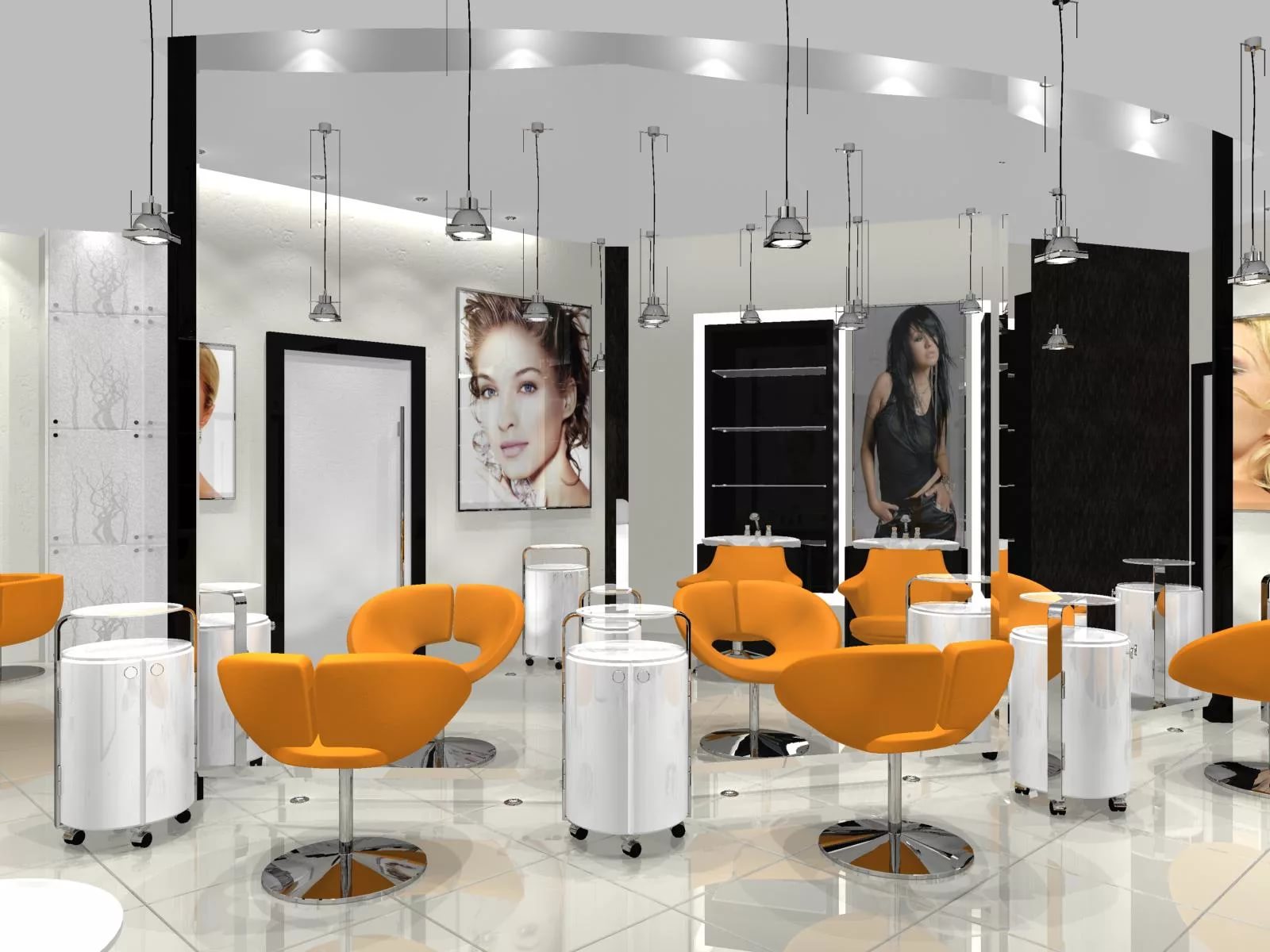 Привлекательно смотрится многофункциональность рабочих мест. Время посетителей значительно экономится, когда создается возможность проведения одновременно нескольких процедур. Например, можно осуществлять стрижку и делать маникюр или педикюр.